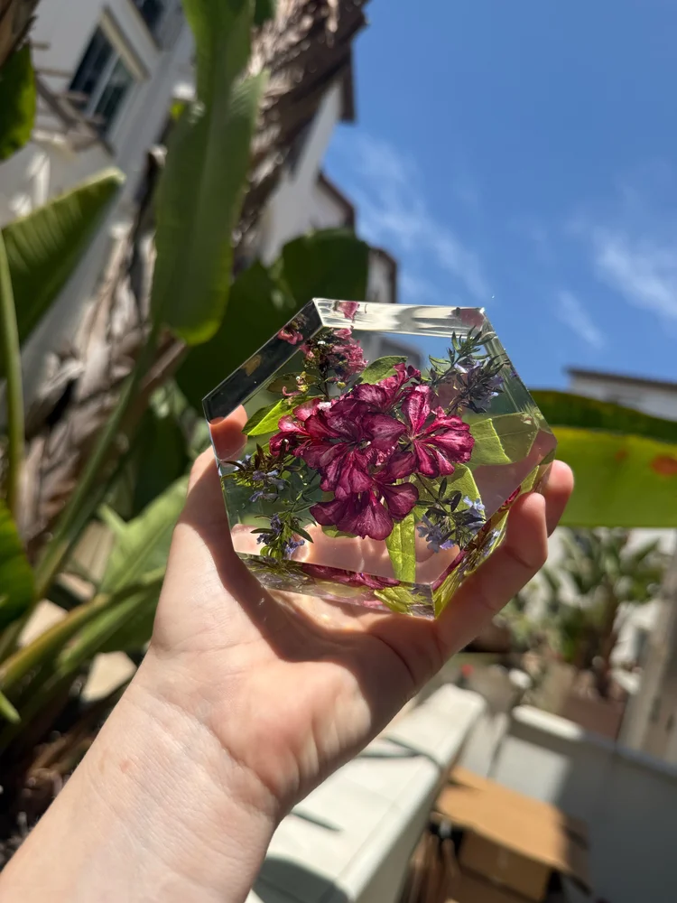 I do my thing! When choosing me as your floral preservationist, it means that you value and appreciate my individual artistic style. If you have certain preferences as far as minimalistic or full design/certain layouts, please let me know in advance. Otherwise I will use my expertise and eye for resin floral design to create the most aesthetically pleasing pieces based on your original bouquet.