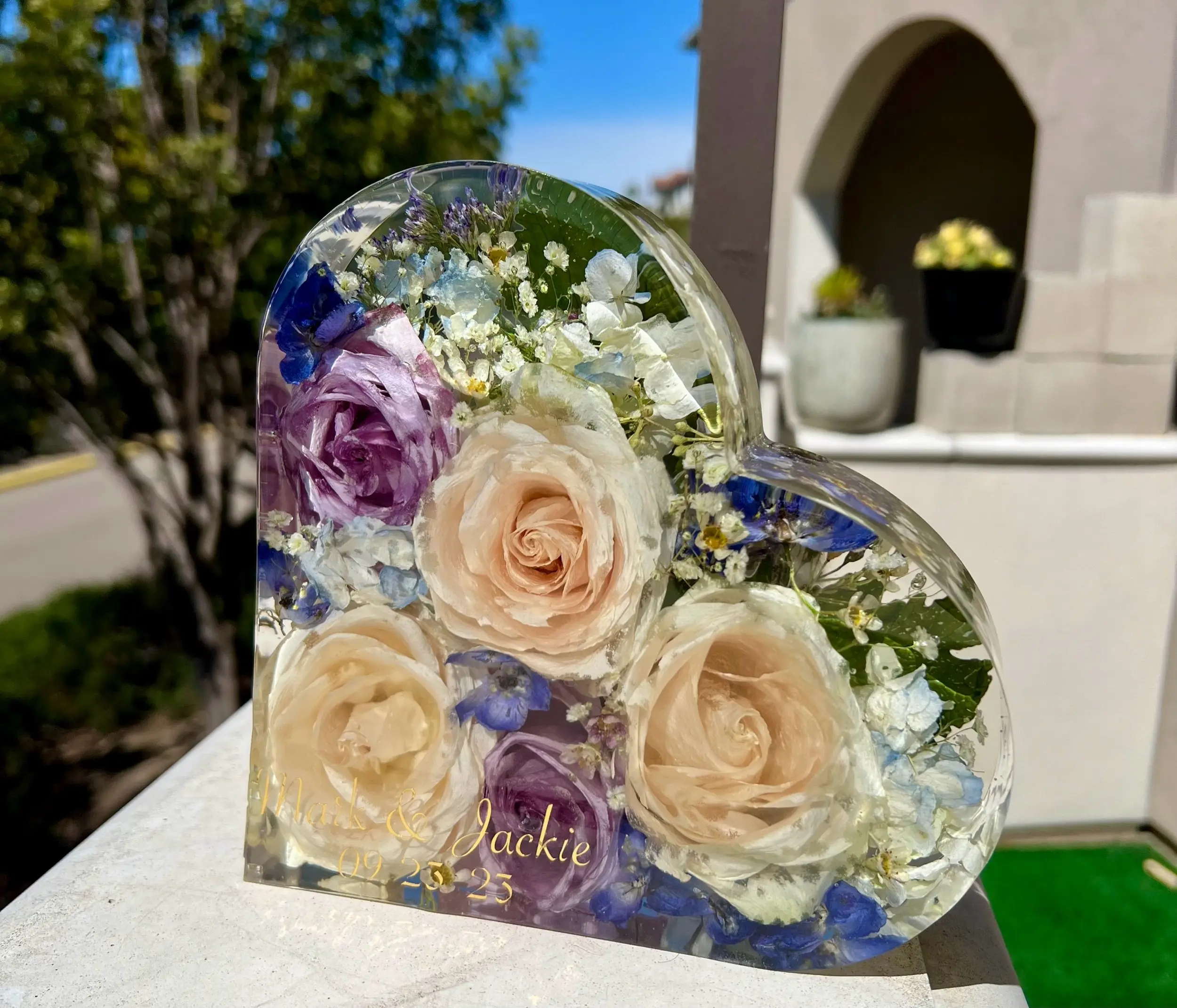Click to place your floral preservation deposit today for 2025-26!Typical turnaround is 6+ months but can vary, especially in peak wedding season. Please read Artist, FAQ & Preservation info before booking. $300 min order required. Past-wedding orders add $50 rush fee at checkout.