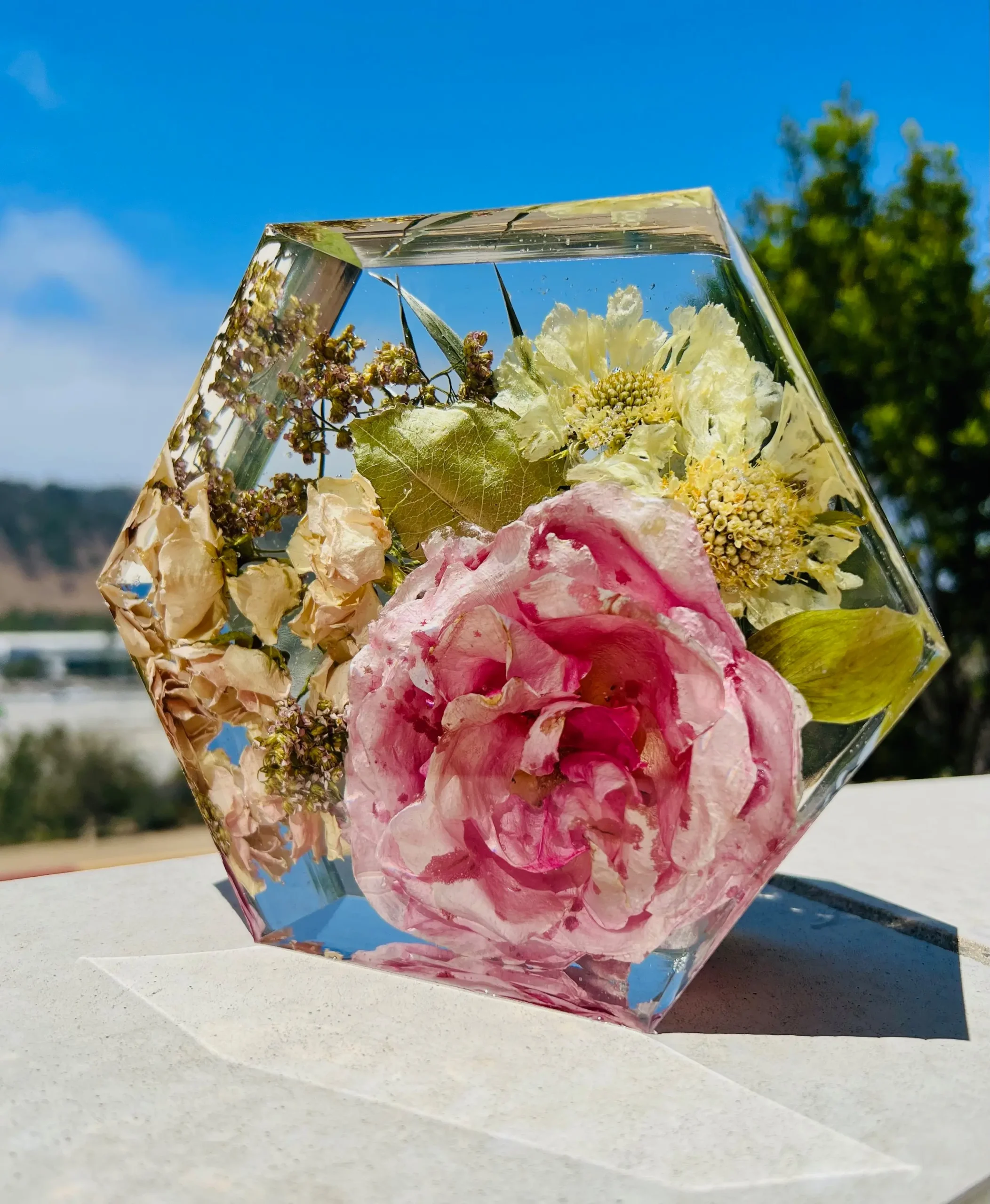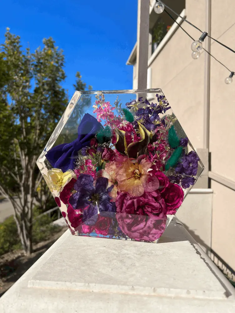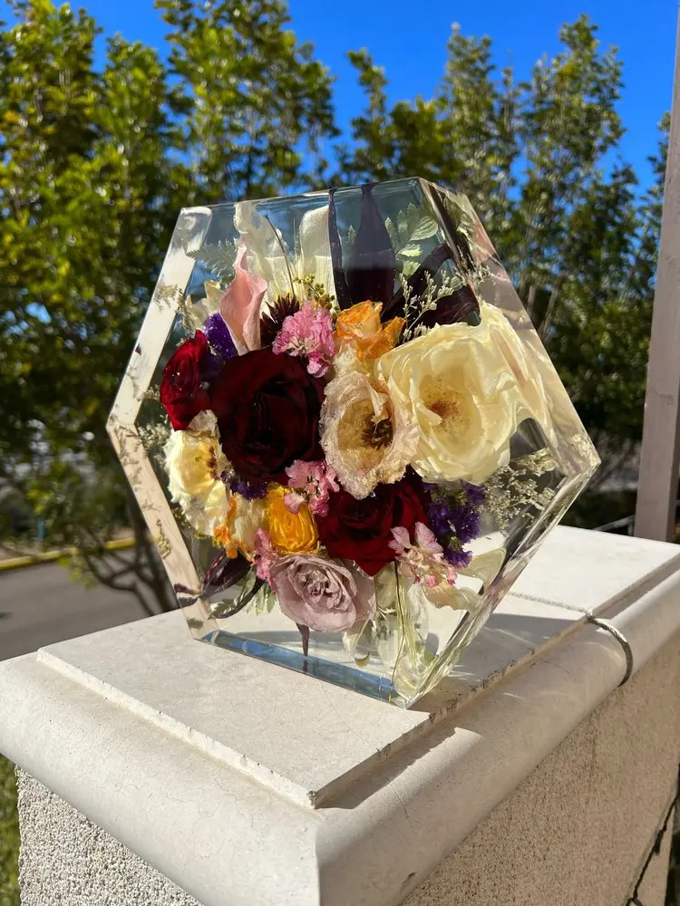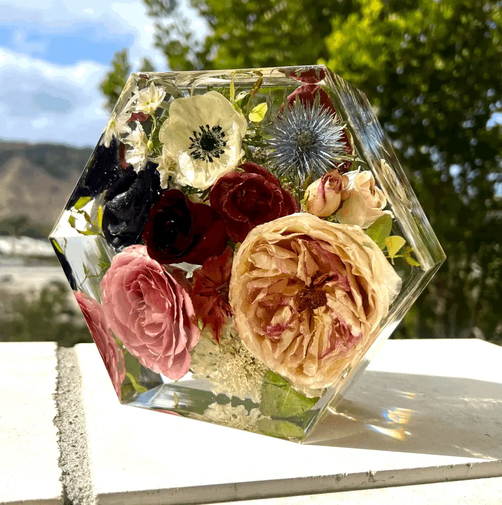 + Dark areas on your flowers after the block is made means that they were bruised sometime during its life span. How they are handled from start to finish is a key factor in getting the best results, so handle with care! Bruising may not be apparent until they are set in resin. Your flowers will dry with blemishes if there are blemishes when they arrive.