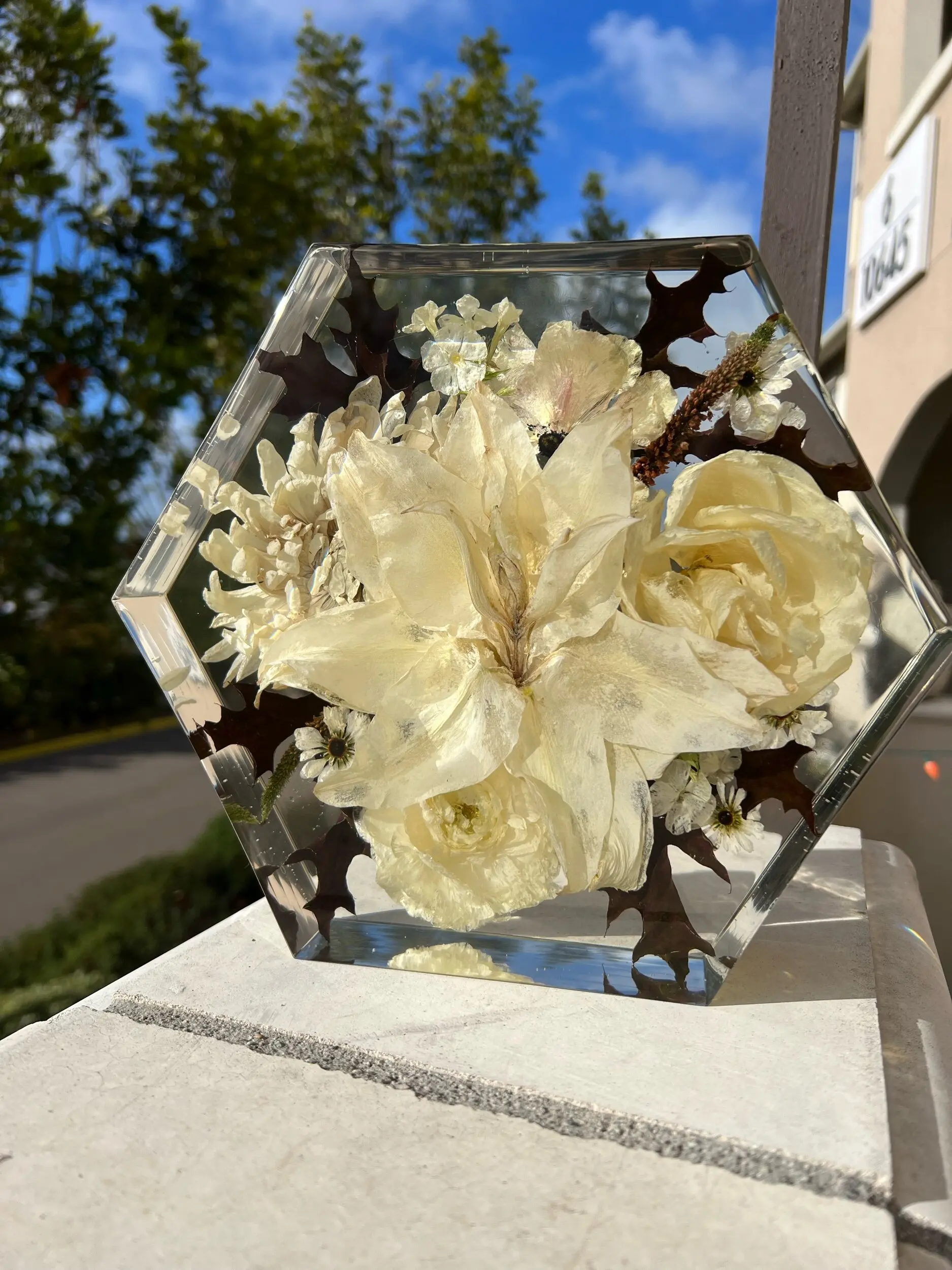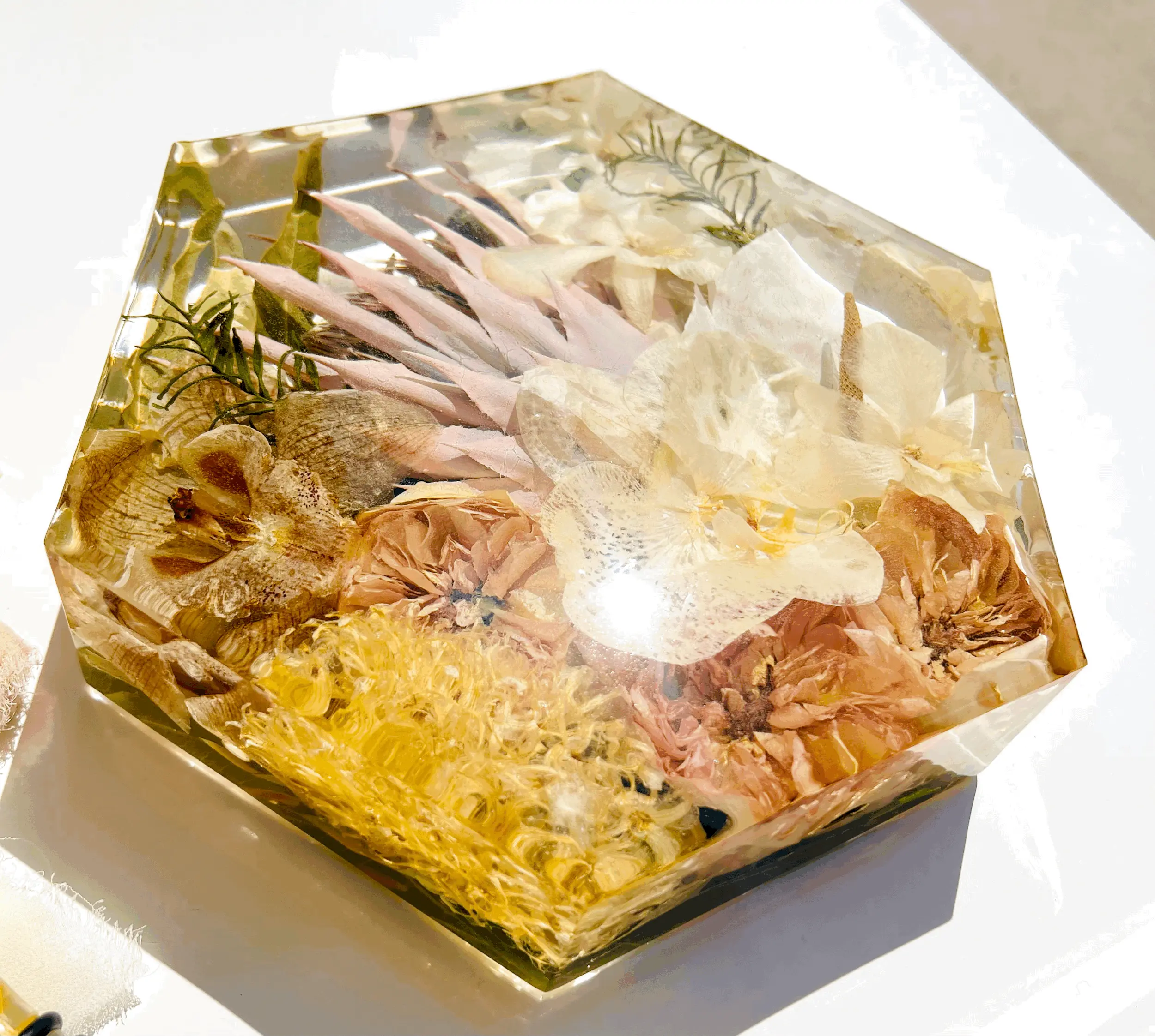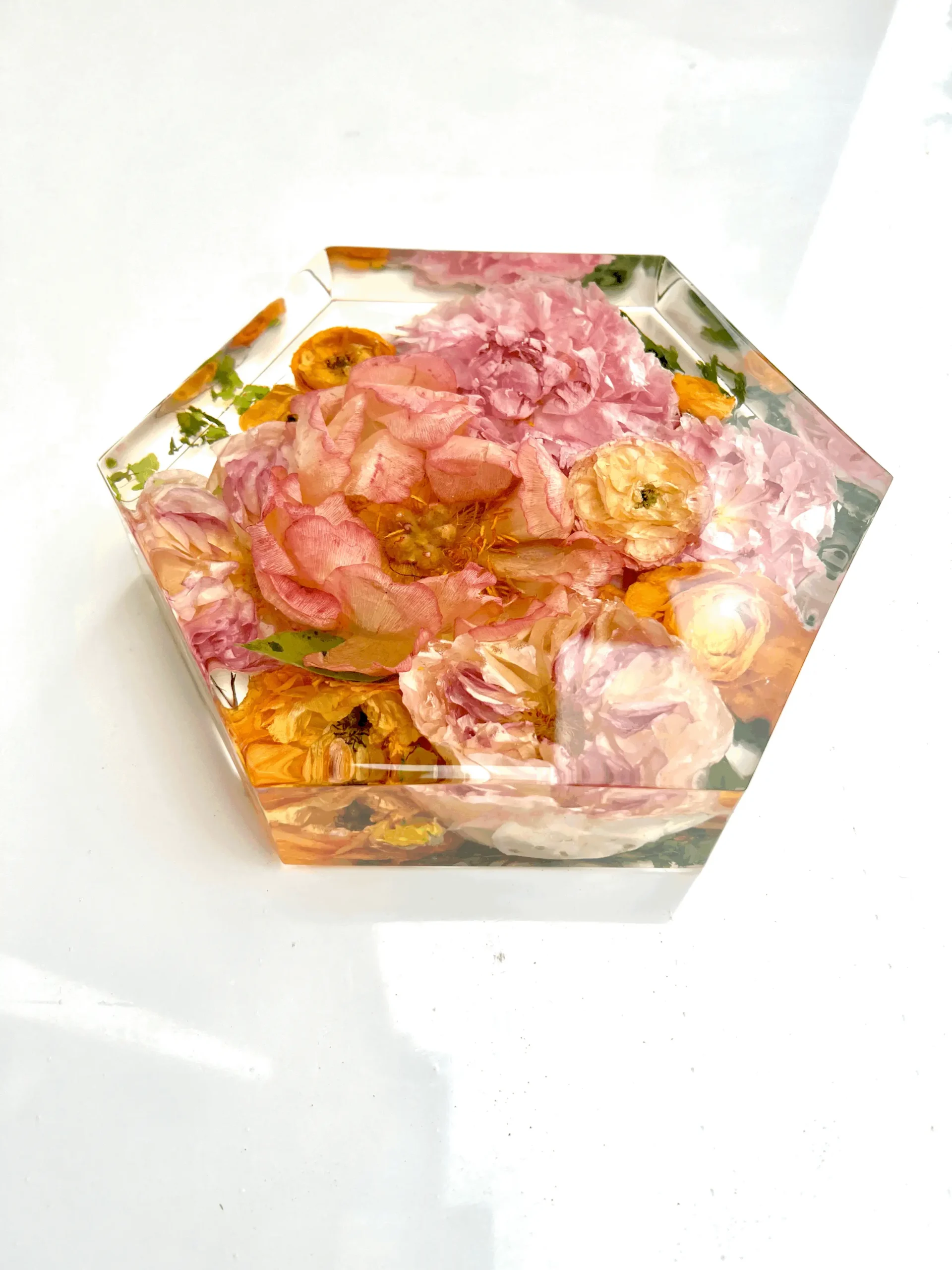 + Dark areas on your flowers after the block is made means that they were bruised sometime during its life span. How they are handled from start to finish is a key factor in getting the best results, so handle with care! Bruising may not be apparent until they are set in resin. Your flowers will dry with blemishes if there are blemishes when they arrive.