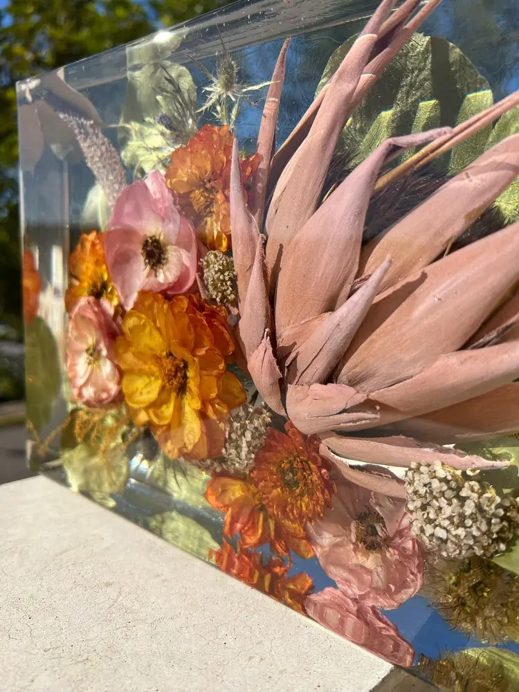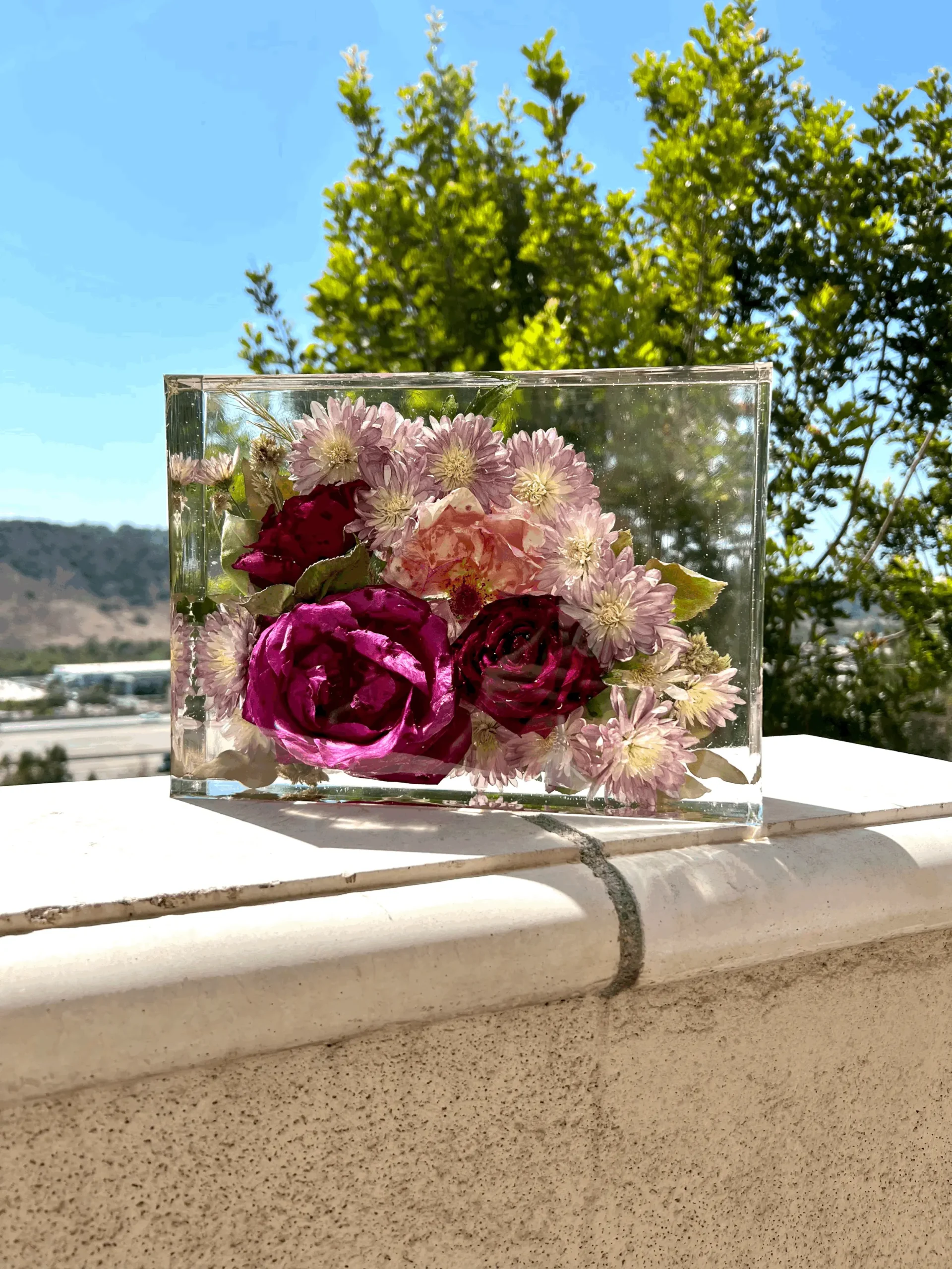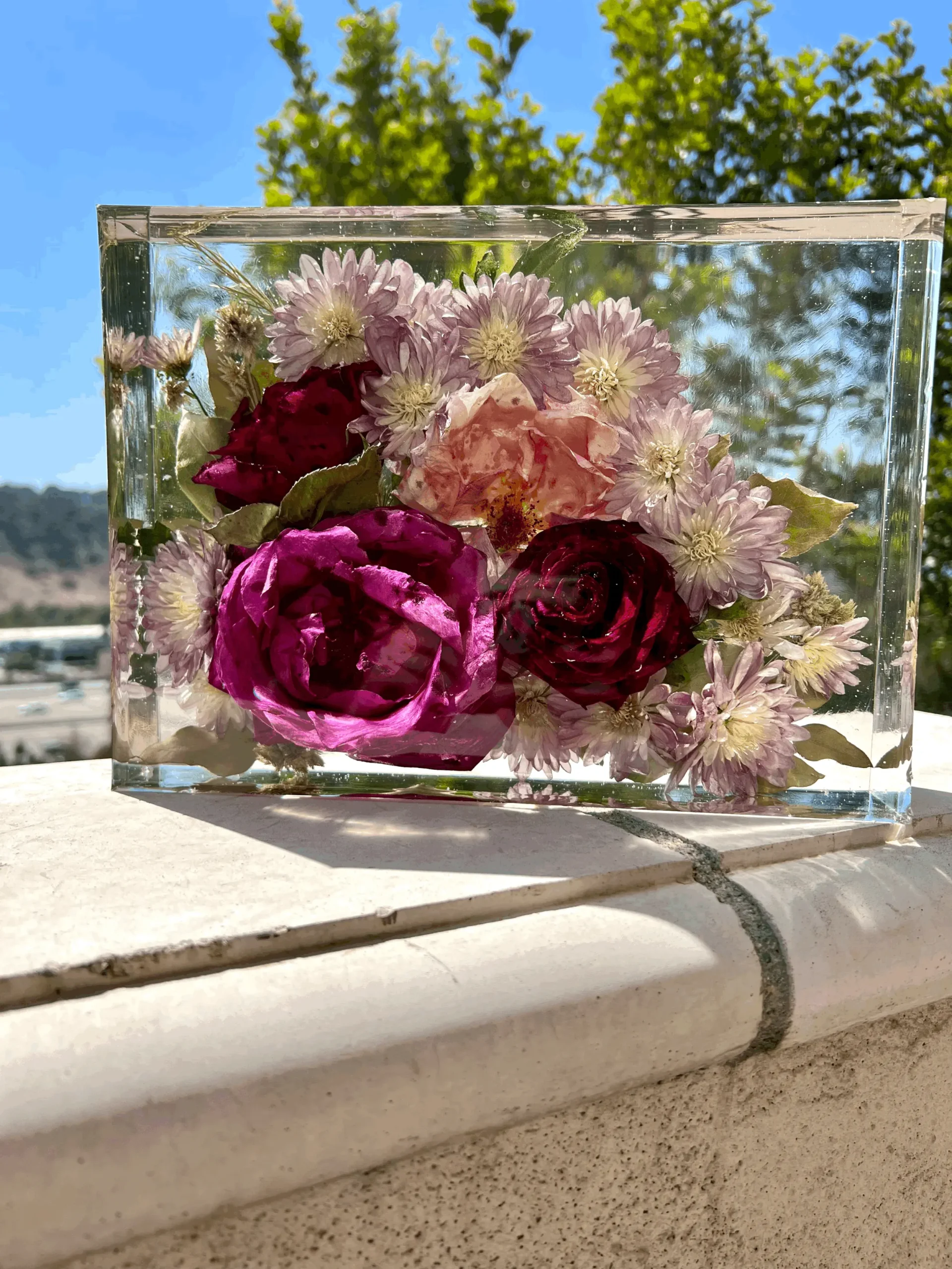 + Dark areas on your flowers after the block is made means that they were bruised sometime during its life span. How they are handled from start to finish is a key factor in getting the best results, so handle with care! Bruising may not be apparent until they are set in resin. Your flowers will dry with blemishes if there are blemishes when they arrive.
