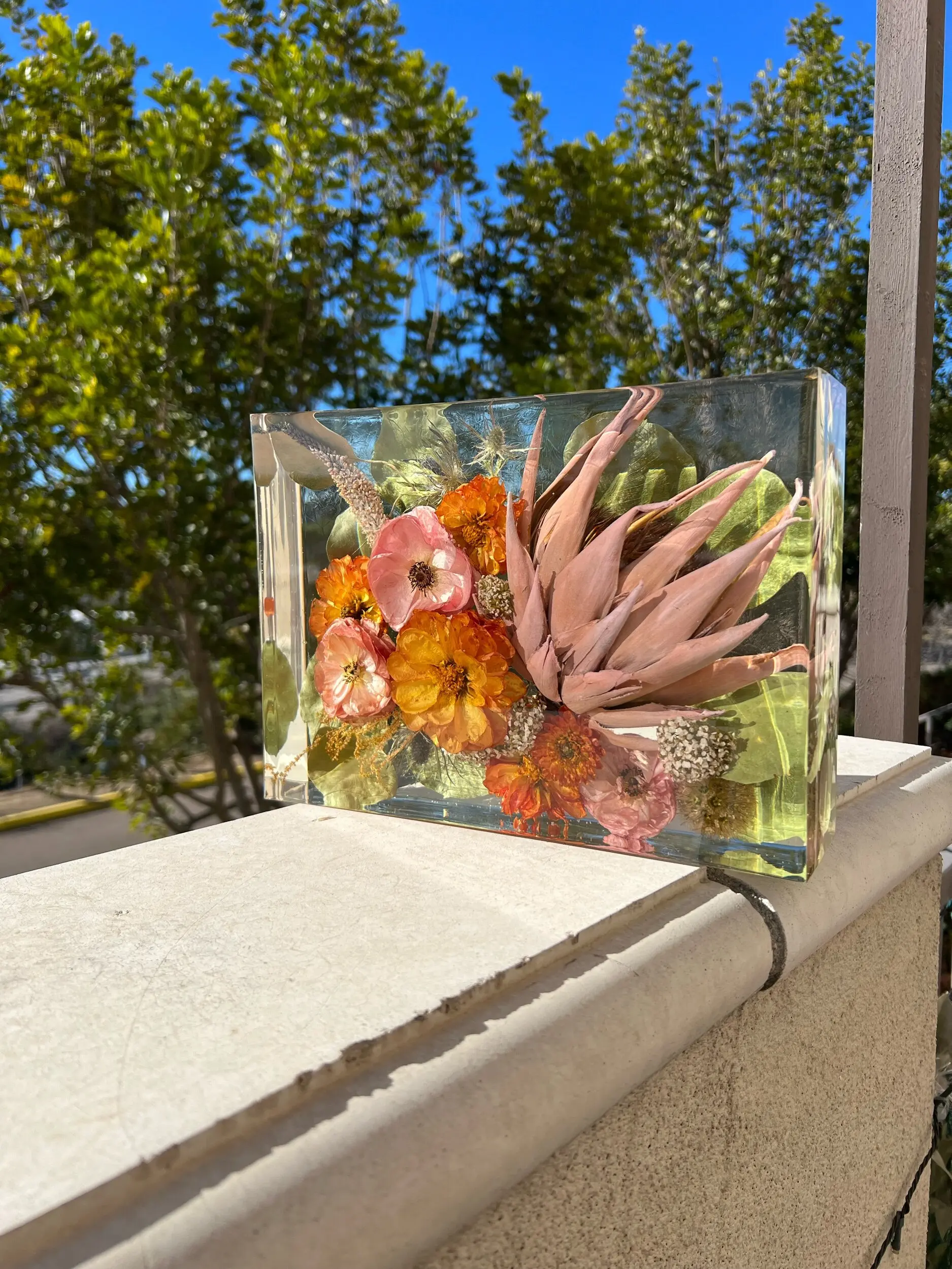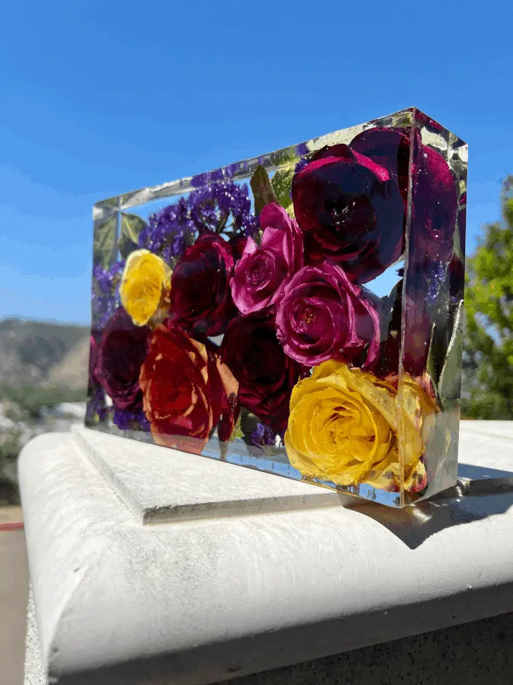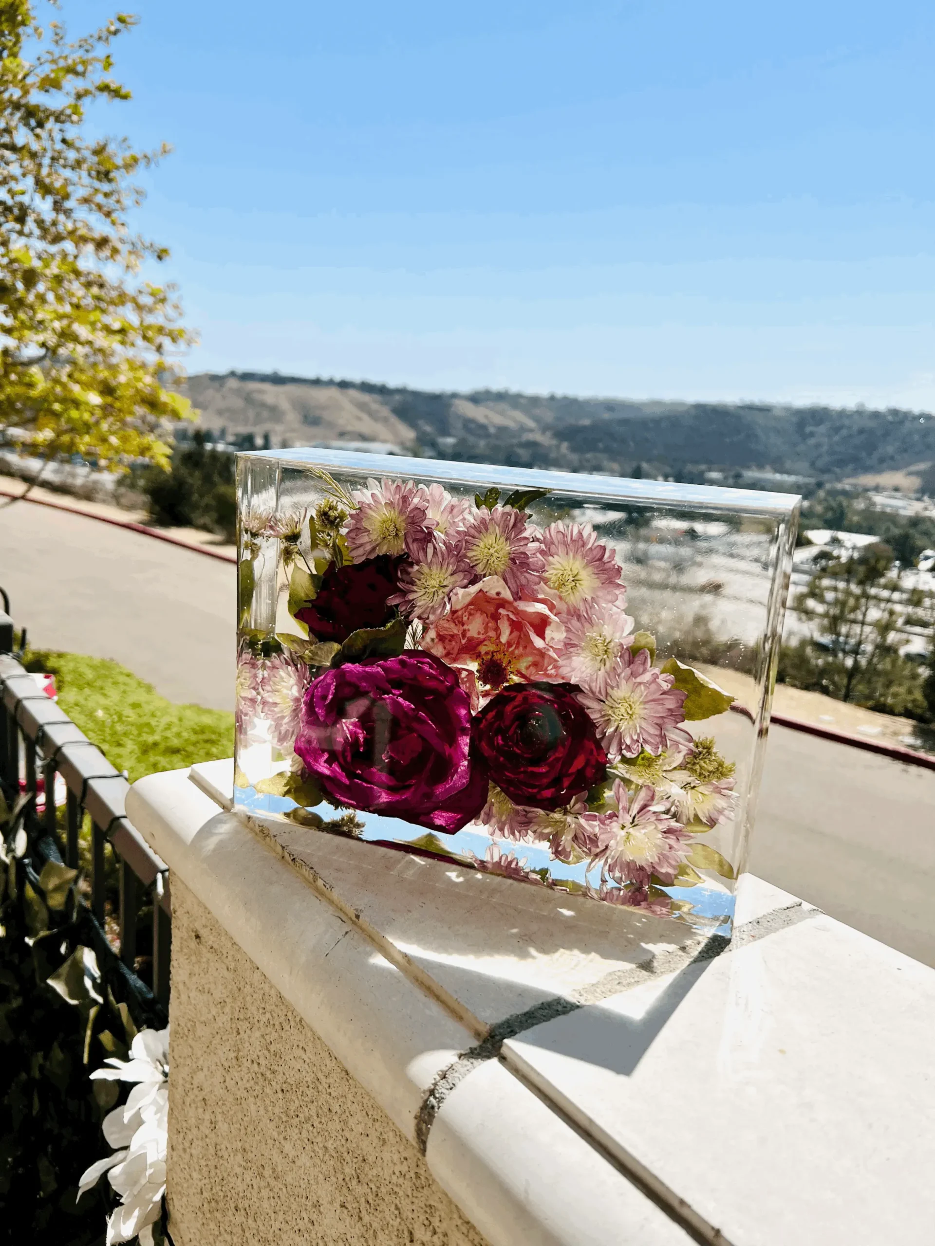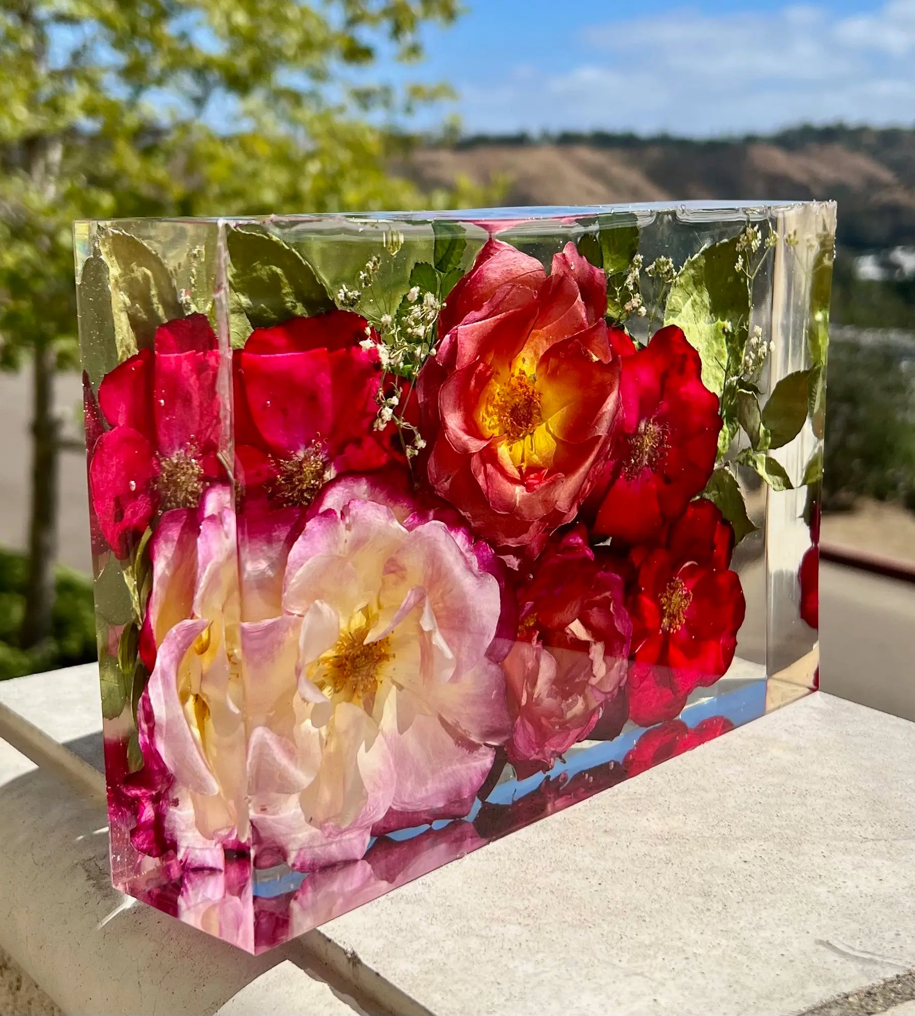 + Dark areas on your flowers after the block is made means that they were bruised sometime during its life span. How they are handled from start to finish is a key factor in getting the best results, so handle with care! Bruising may not be apparent until they are set in resin. Your flowers will dry with blemishes if there are blemishes when they arrive.