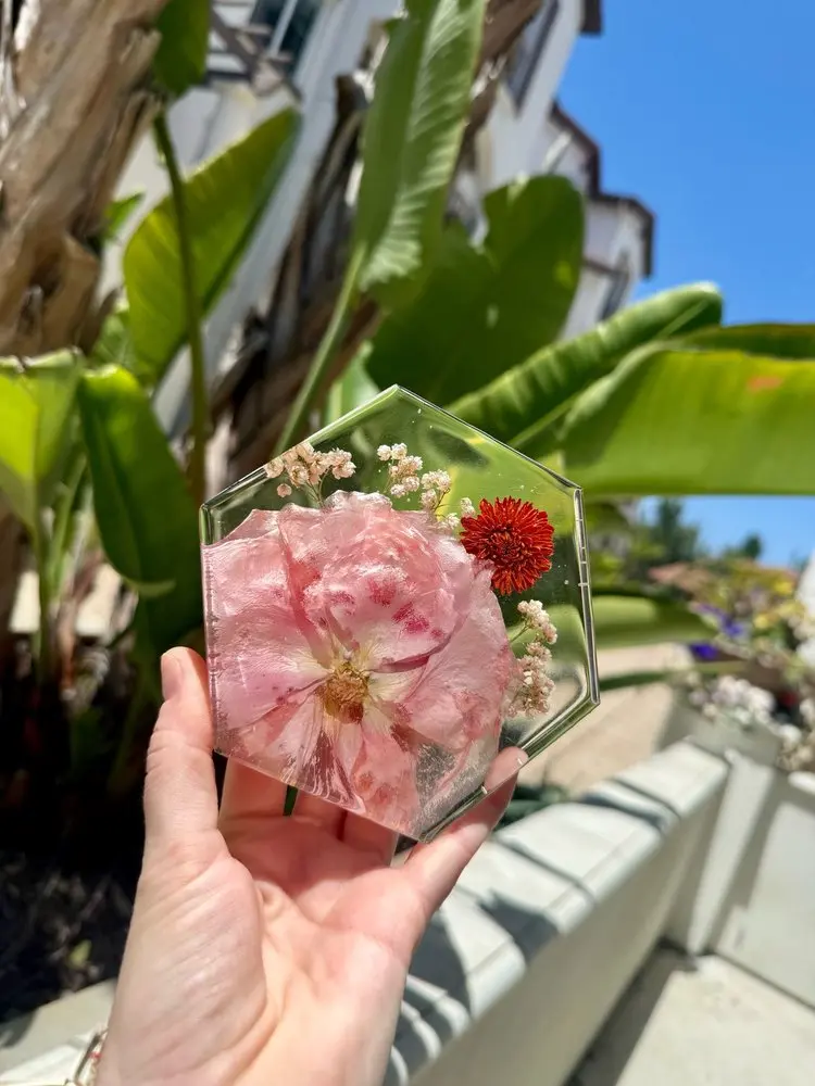 Much larger version of the circle/edgy coasters with your special event, wedding, memorial flowers, gender reveal, etc!