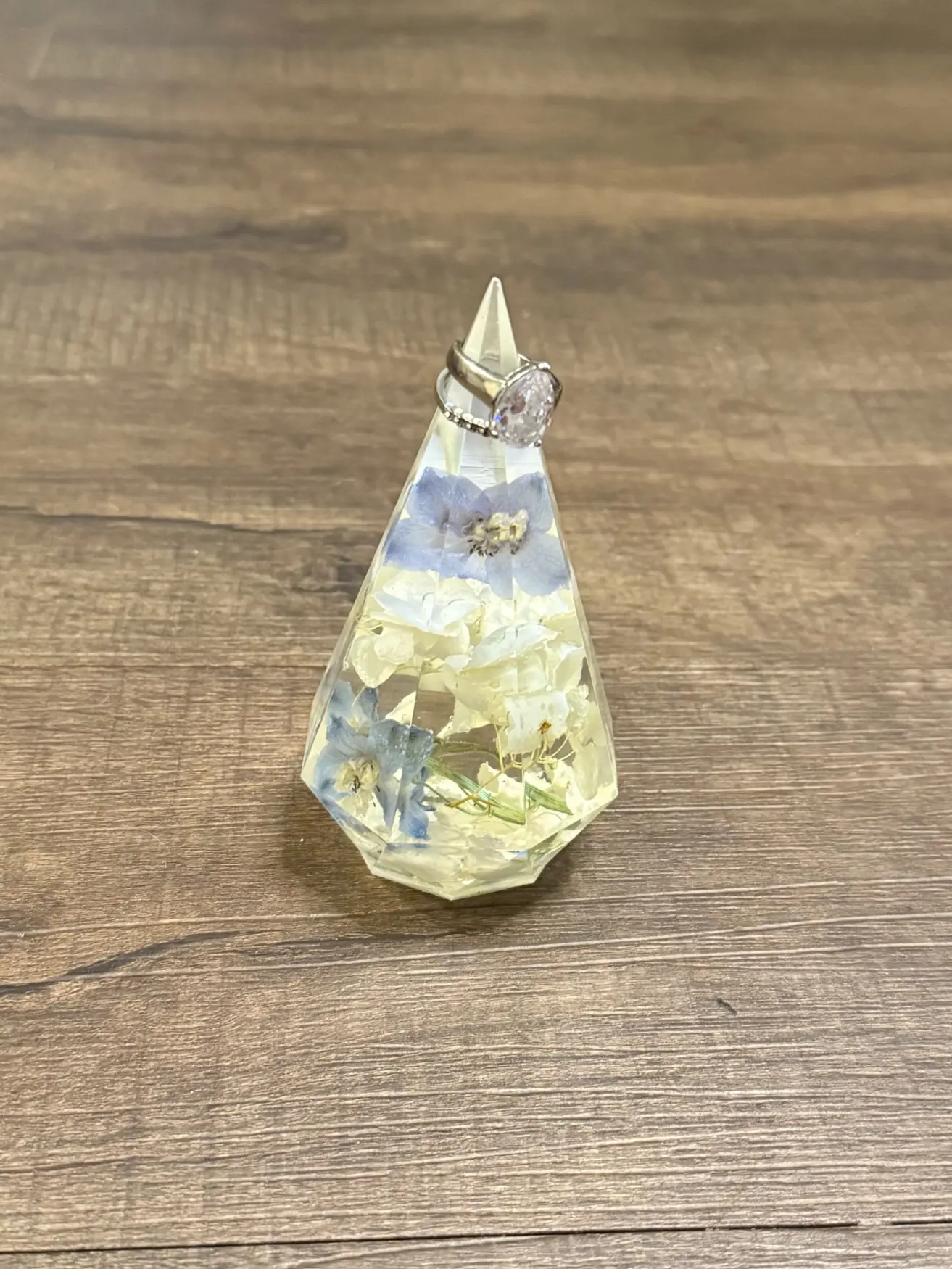 Blue Delphinium/White Hydrangea Prism Ring Holder